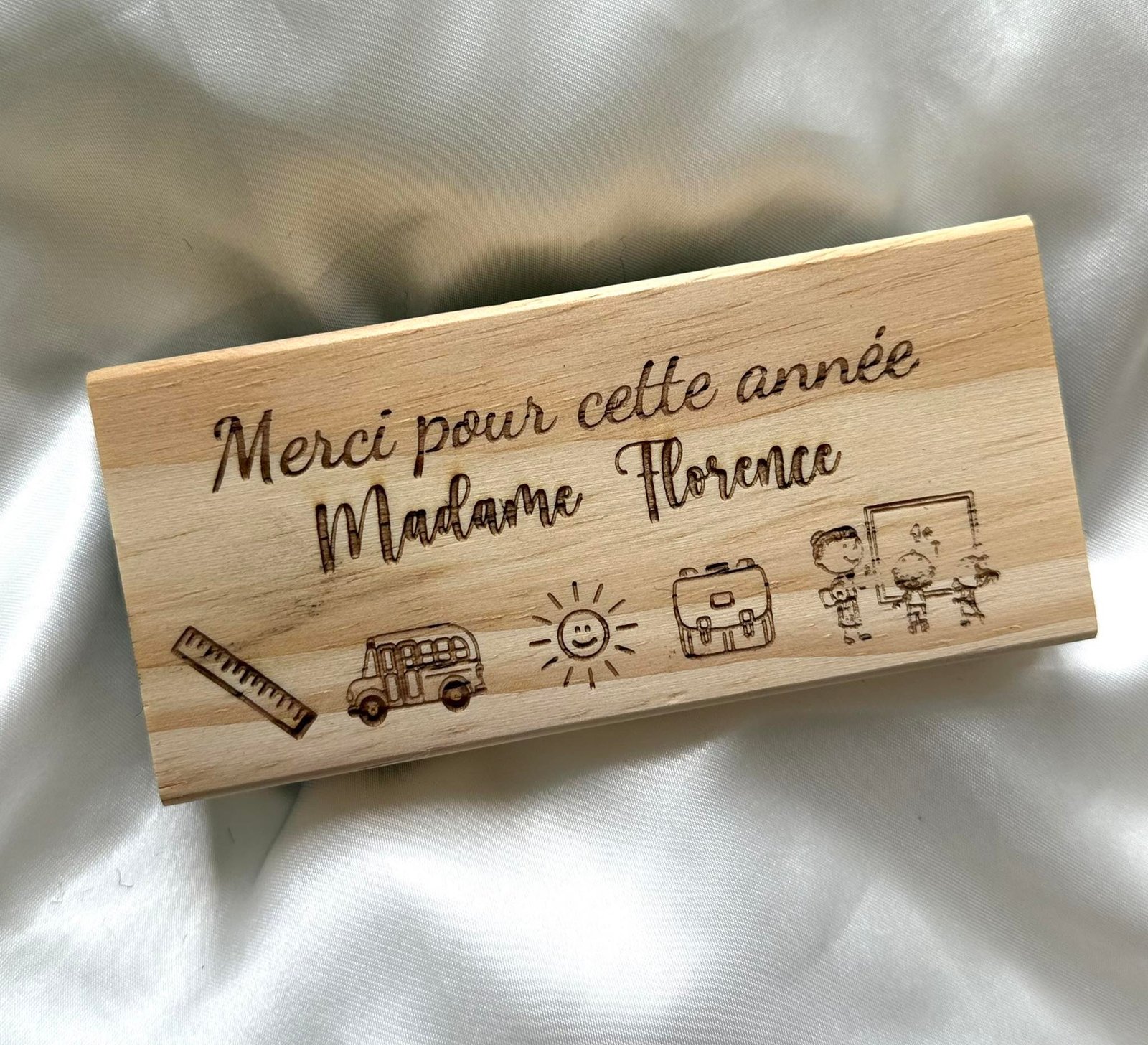 Offrez un cadeau personnalisé et original pour remercier le maître ou la maîtresse de votre enfant en fin d’année scolaire. Chaque pièce est réalisée à la main avec soin.