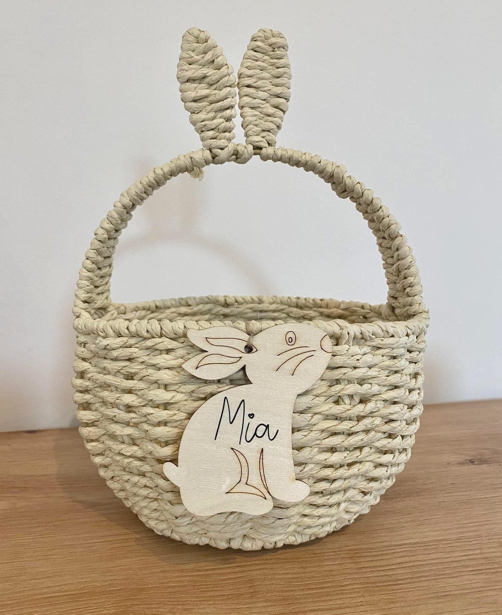 Panier de Pâques personnalisé avec le prénom de l’enfant. Parfait pour la chasse aux oeufs !